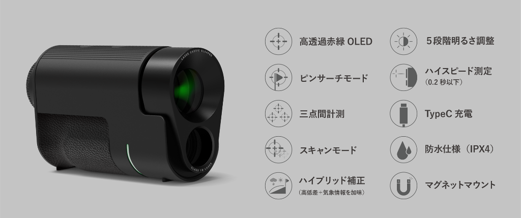 「ピンフラッグに上手く当てられない」「イライラしたくない」という方に。強力な光学式手ブレ補正を搭載し、一瞬で正確な距離を測れるハイエンド寄りのモデルです。